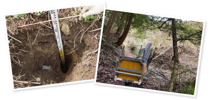 たとえばビルを建てたり、道路や橋などをつくる場合には、その構造物が壊れたり、沈下して傾いたりしないよう地盤を十分に調べることが必要となります。特に狭い日本では地盤の軟弱なところや山地、傾斜地などに構造物をつくらざるを得ない場合が多く、地震や風雨の災害の多さも目立ちますので、地質調査は非常に重要なものとなります。